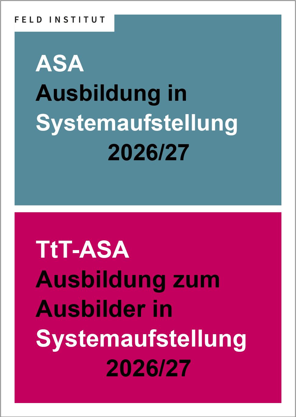 TtT-ASA1 Teilnehmer haben bisher keine Ausbildung im FELD, wohl aber bereits Ausbildung in Systemaufstellung bei einem Kollegen absolviert und möchten ihre TtT-Ausbildung im Rahmen der ASA-Ausbildung im FELD machen.